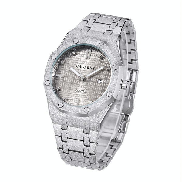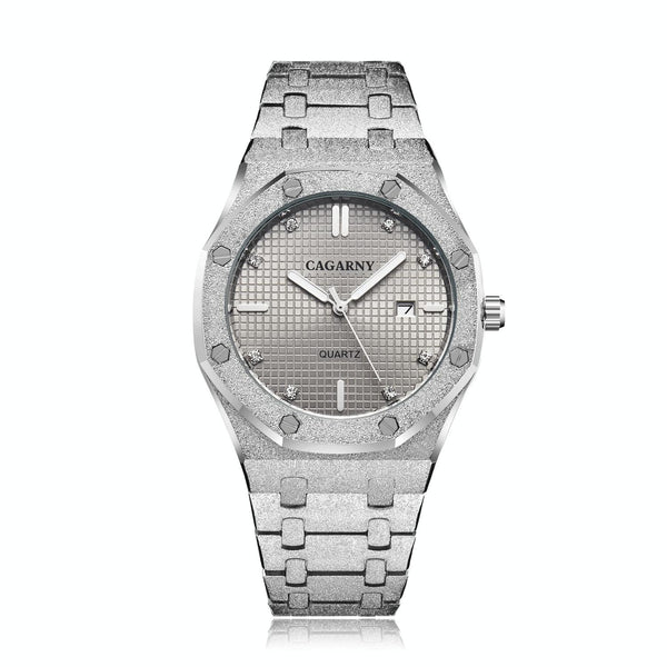 CAGARNY 6885 Simple Stone Surface Quartz Steel Band Watch For Men(Silver Shell Grey Surface)