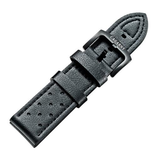 CAGARNY Simple Fashion Watches Band Green Buckle Leather Watch Band, Width: 24mm(Black)