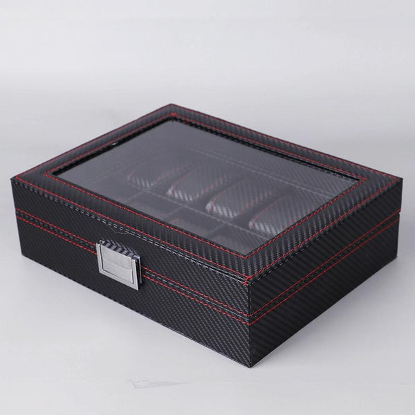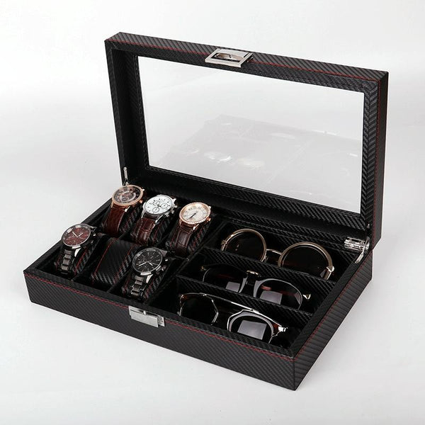 Carbon Fiber PU Leather Watch Box Jewelry Storage Box Packaging Box, Style: 6 + 3