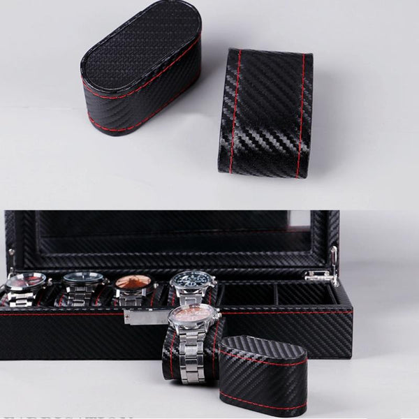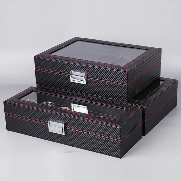Carbon Fiber PU Leather Watch Box Jewelry Storage Box Packaging Box, Style:Double-layer