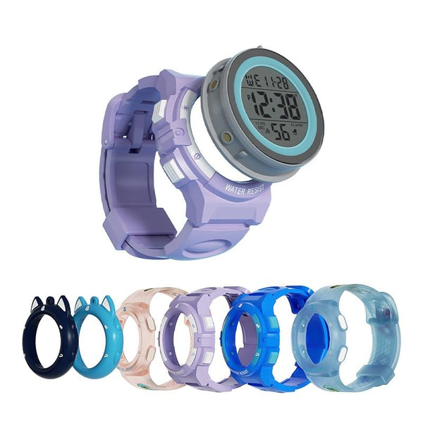 Changing Case Electronic Watch Mini Cartoon Alarm Clock Waterproof Watch(Girl)
