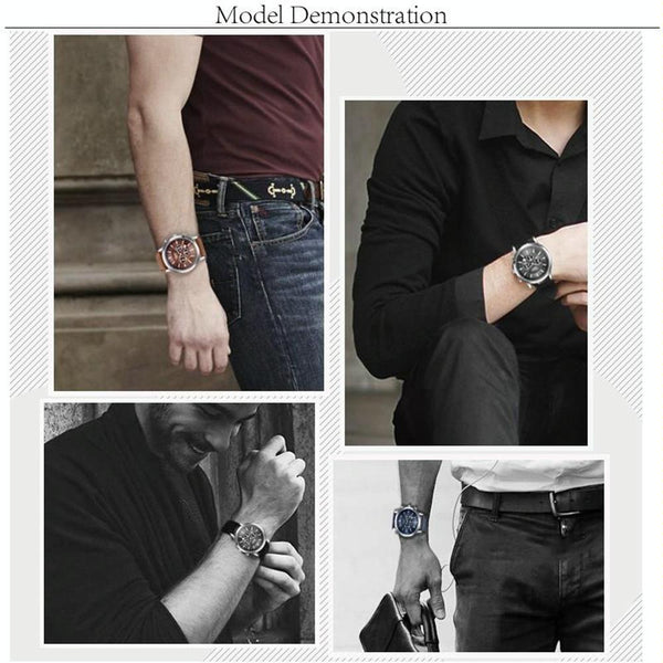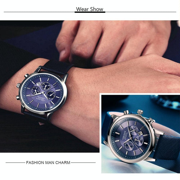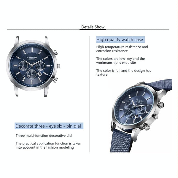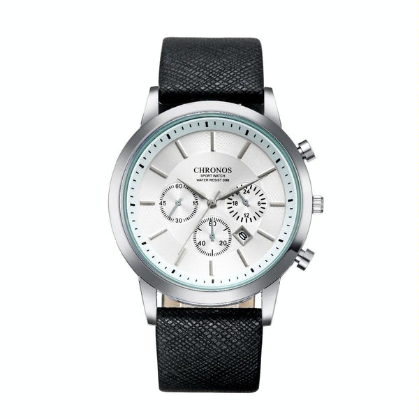 CHRONOS CH0401 Three-eye Six-needle Leather Belt Sports Watch for Men(Black and White)