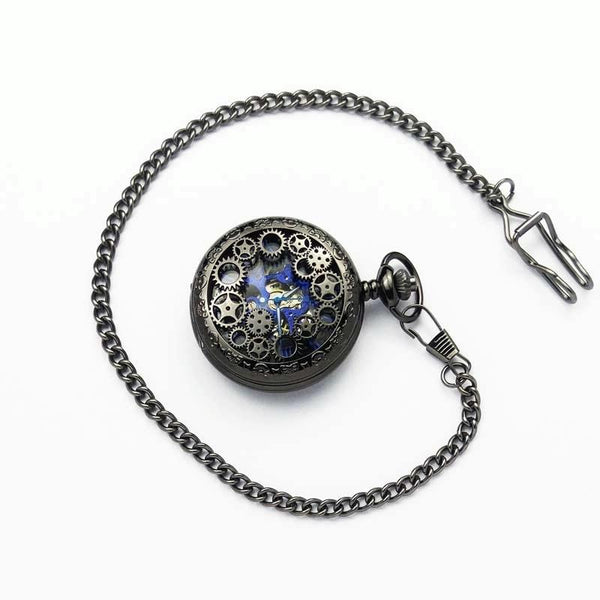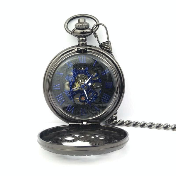 Classical Mechanical Pocket Watch Large Retro Gear Embossed Hollow Pocket Watch(Black)