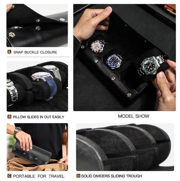 CONTACTS FAMILY Outdoor Convenient Leather Watch Storage Box(Black)