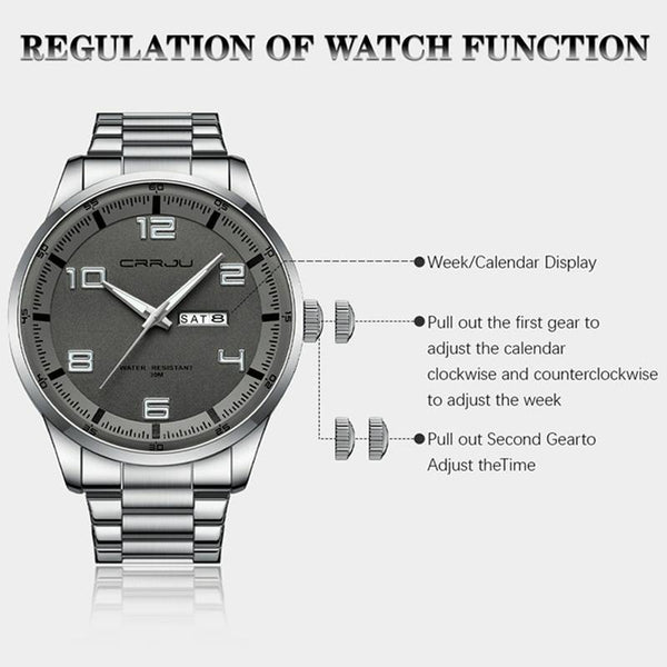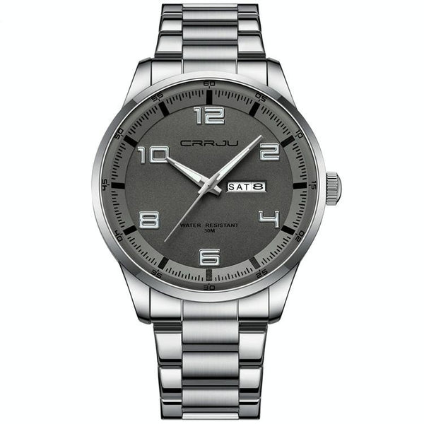 CRRJU 5005 Men Steel Strap Watch Simple Business Personalized Waterproof Watch With Calendar Display(Silver)
