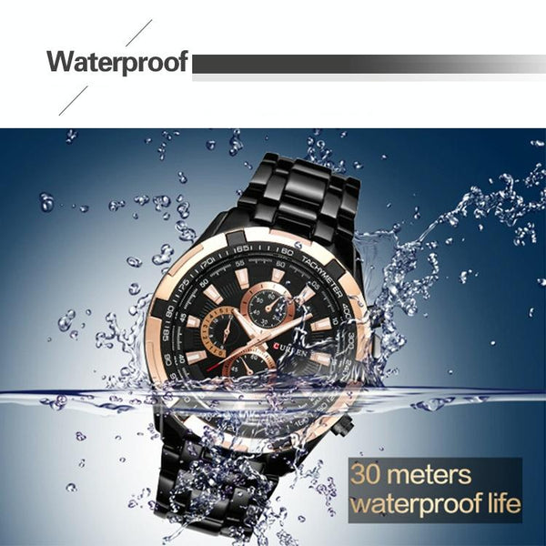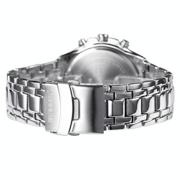 CURREN 8023 Men Stainless Steel Analog Sport Quartz Watch(Black case white face)