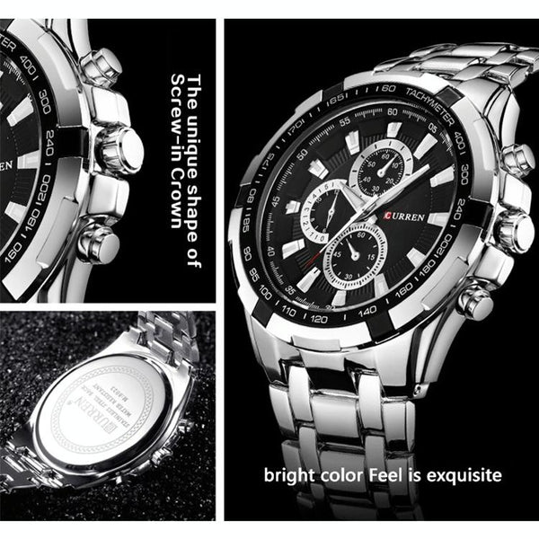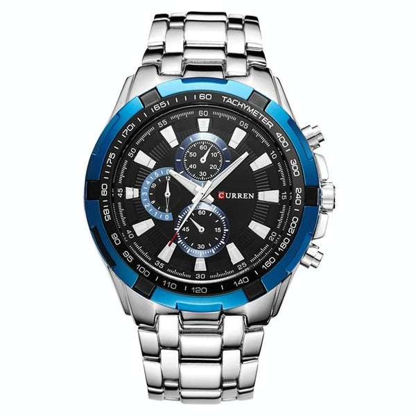 CURREN 8023 Men Stainless Steel Analog Sport Quartz Watch(White case blue face)