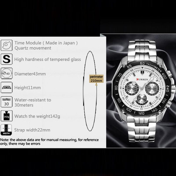 Curren 8077 Men Casual Business Waterproof Quartz Watch(White Shell Black)