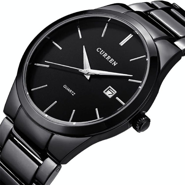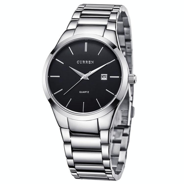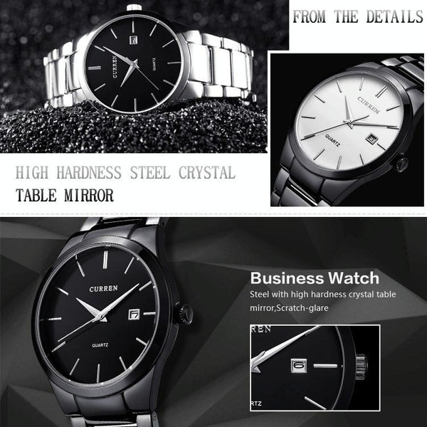 CURREN 8106 Fashion Business Calendar Waterproof Full Steel Quartz Watch(white case black face)