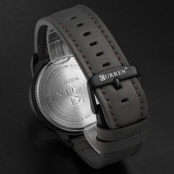 Curren 8217 Leather Strap Casual Waterproof Quartz Men Watch with Calendar(Black Shell Black)
