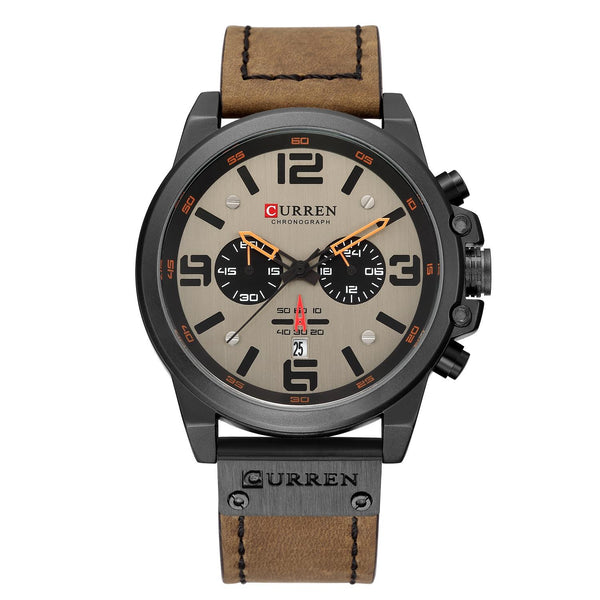 Curren 8314 Sports Six-Hand Waterproof Leather Strap Calendar Men Quartz Watch, Color: Black Shell Gray