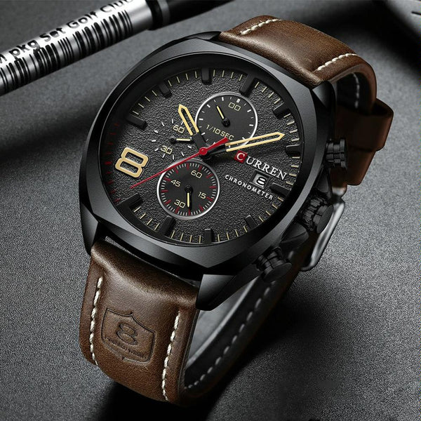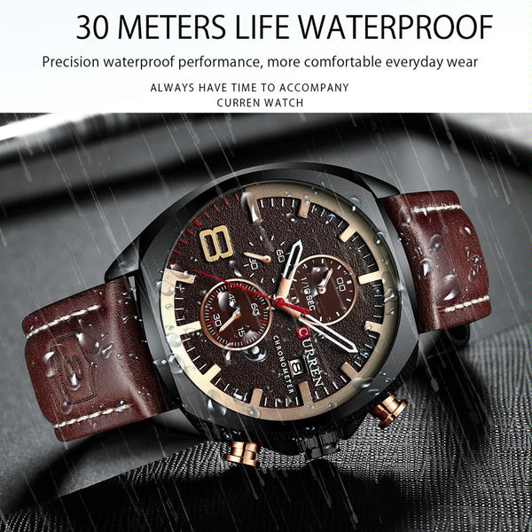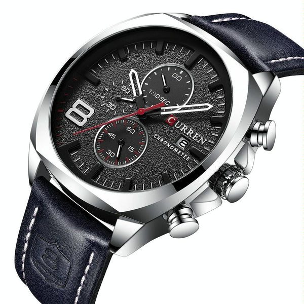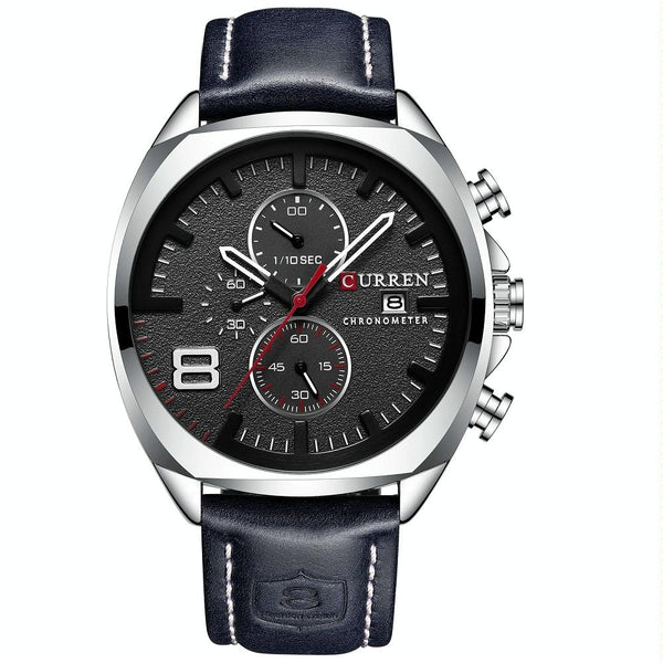 Curren 8324 Six-hand Leather Strap Waterproof Men Watch With Calendar, Color: White Shell Black