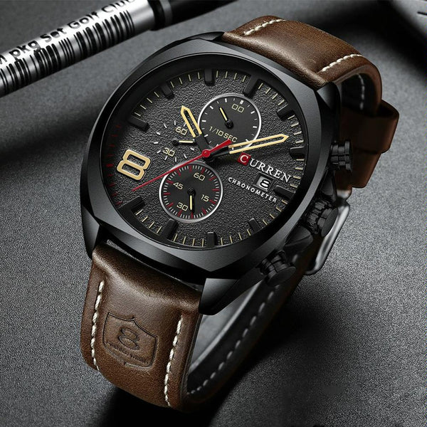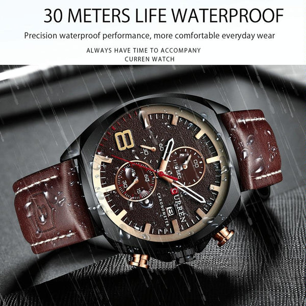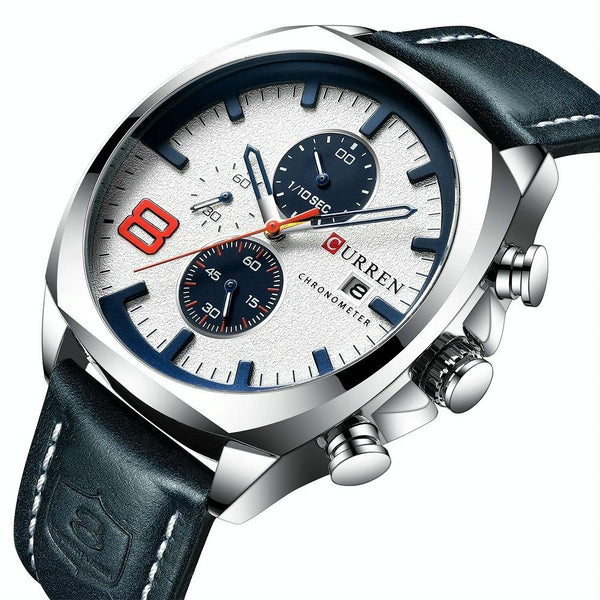 Curren 8324 Six-hand Leather Strap Waterproof Men Watch With Calendar, Color: White Shell White