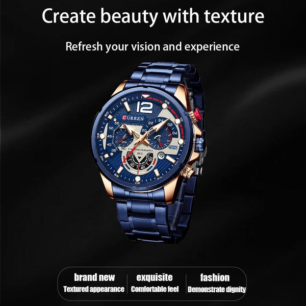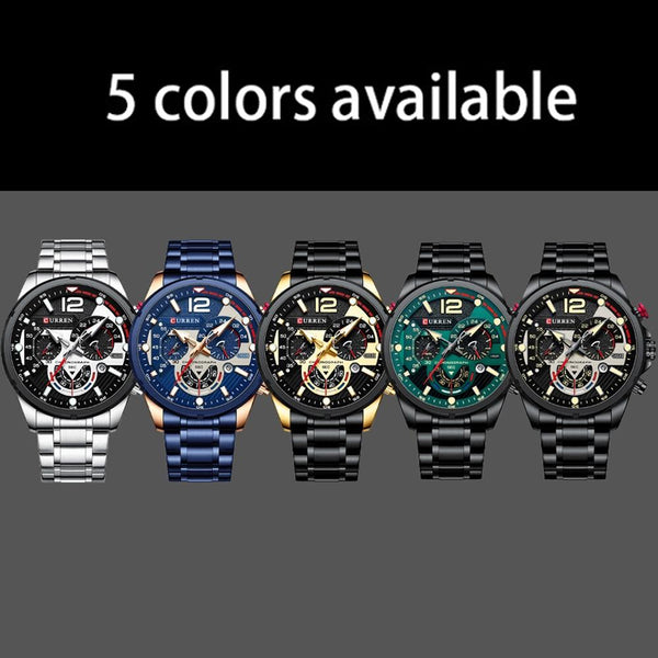 Curren 8395 Calendar Six-Hand Steel Strap Men Quartz Watch, Color: Black Shell Green