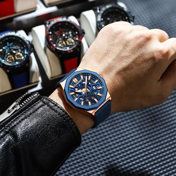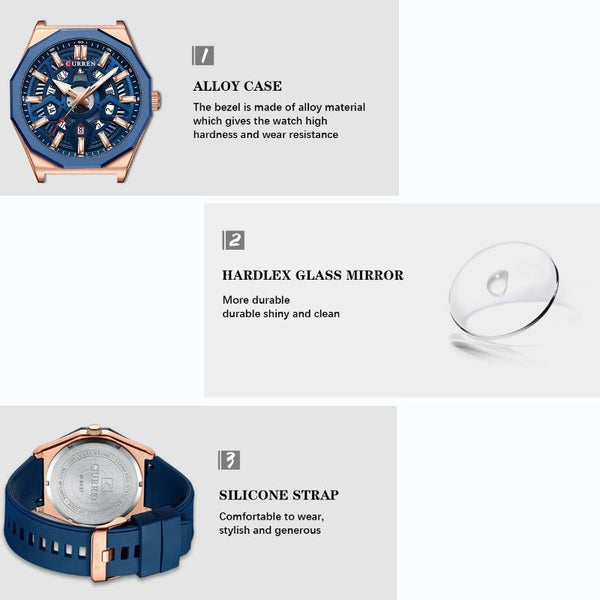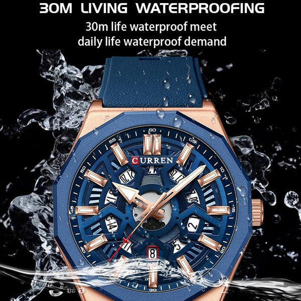 Curren 8437 Casual Men Silicone Strap Quartz Watch with Calendar, Color: White Shell Black