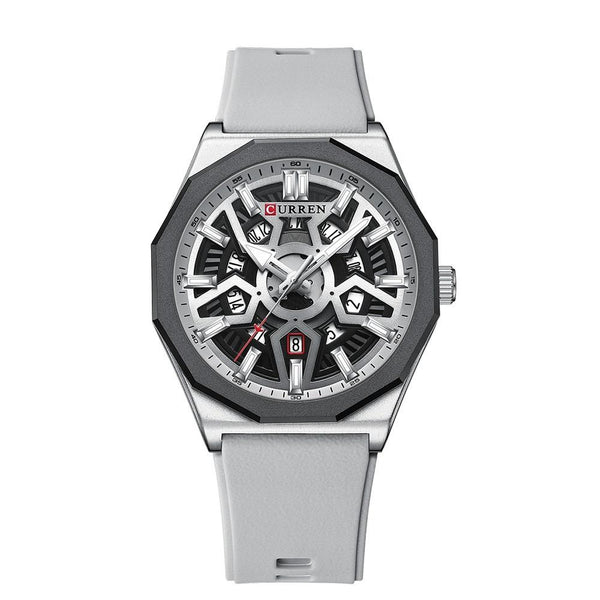 Curren 8437 Casual Men Silicone Strap Quartz Watch with Calendar, Color: White Shell Gray