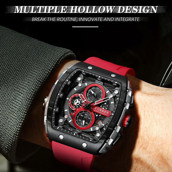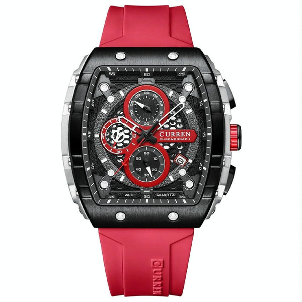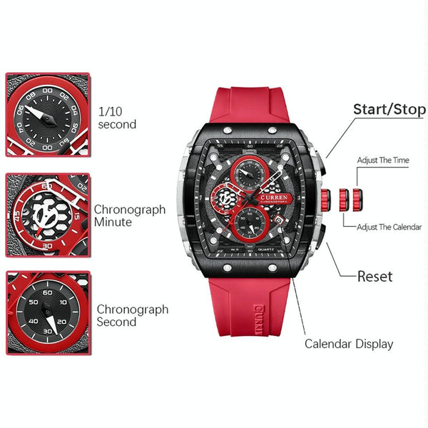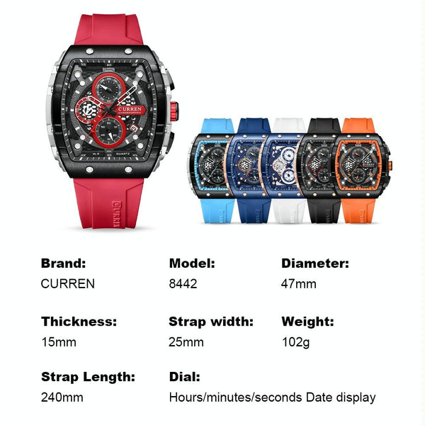 Curren 8442 Sport Six-Hand Silicone Strap Men Quartz Watch, Color: White Shell Red