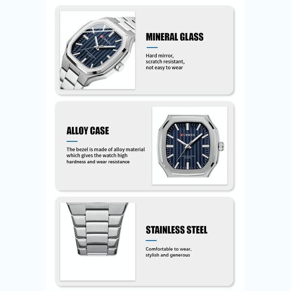 Curren 8458 Business Steel Strap Men Quartz Watch, Color: White Shell Light Green