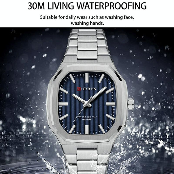 17. Please note: 30 meters waterproof for daily use. It cannot be worn for swimming, bathing, soaking in water, or underwater operations. It can withstand drizzle and small splashes. For a longer life of the watch, avoid contact with corrosive substances.