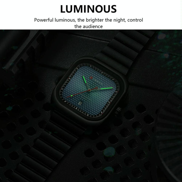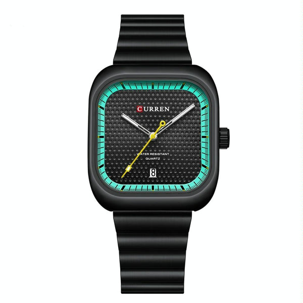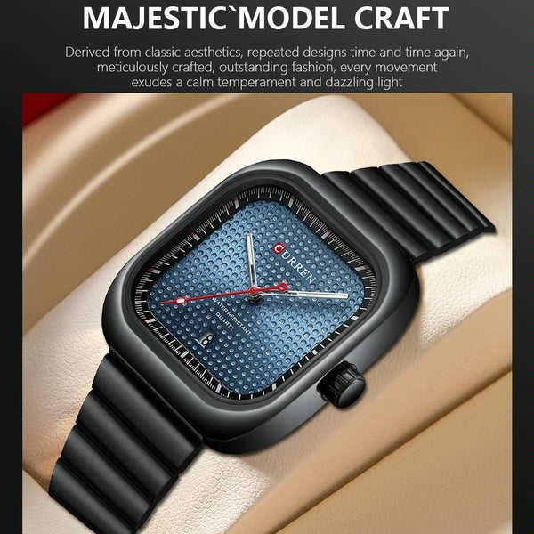 Curren 8460 Casual Steel Strap Square Men Quartz Watch, Color: Black Shell Black