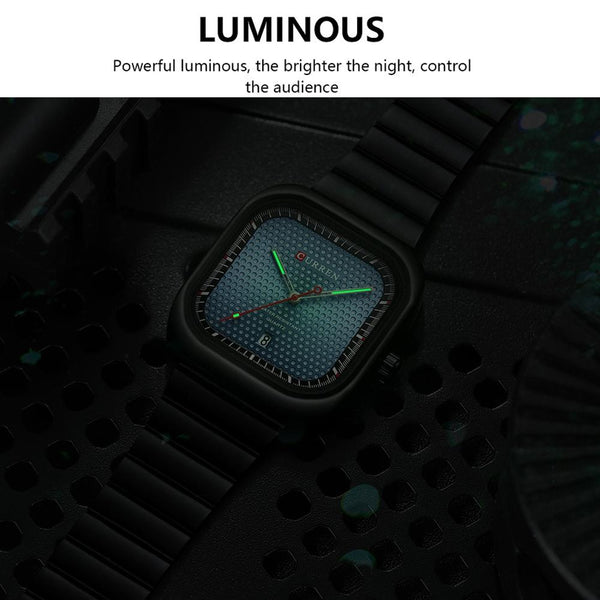 Curren 8460 Casual Steel Strap Square Men Quartz Watch, Color: Black Shell Blue