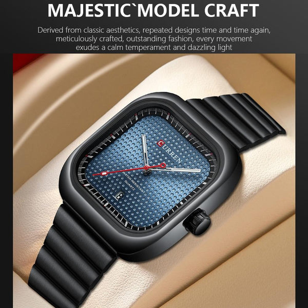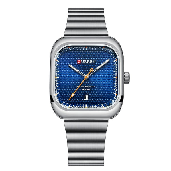 Curren 8460 Casual Steel Strap Square Men Quartz Watch, Color: White Shell Blue