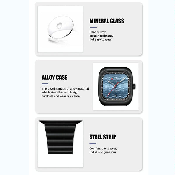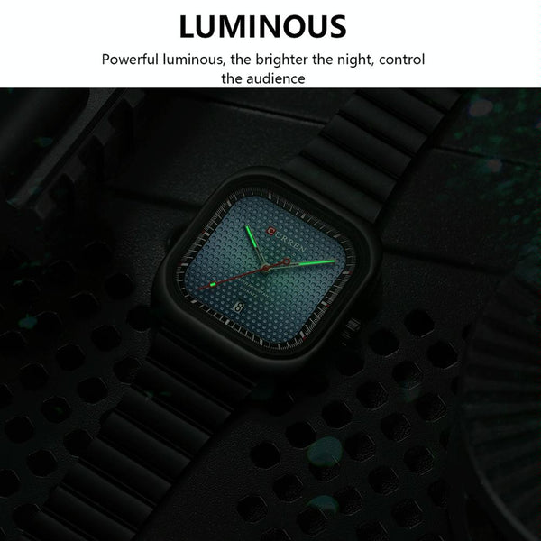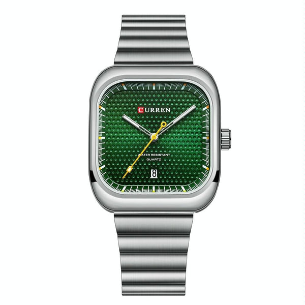 Curren 8460 Casual Steel Strap Square Men Quartz Watch, Color: White Shell Green