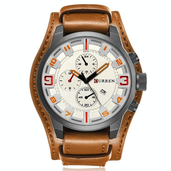 Curren M8225 Army Military Leather Band Men Quartz Watch(Black White)