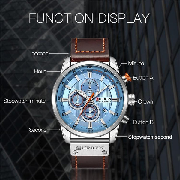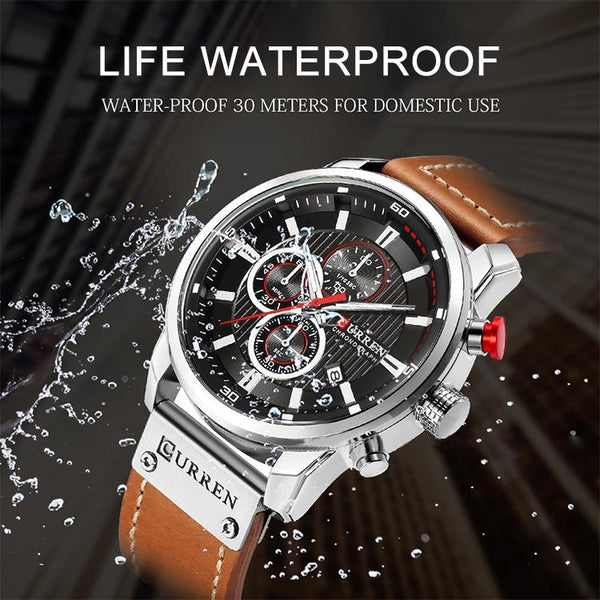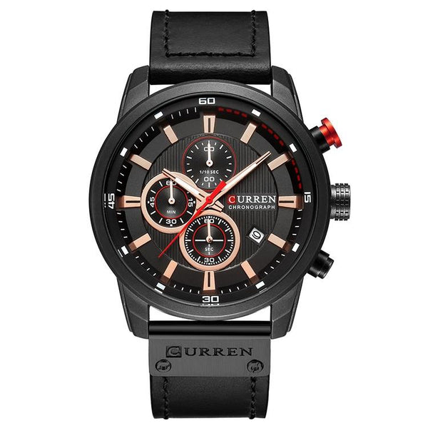 CURREN M8291 Chronograph Watches Casual Leather Watch for Men(Black case black face)