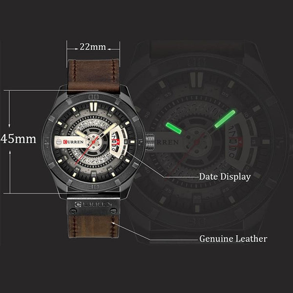 CURREN M8301 Men Military Sports Watch Quartz Date Clock Leather Wristwatch(black case orange)