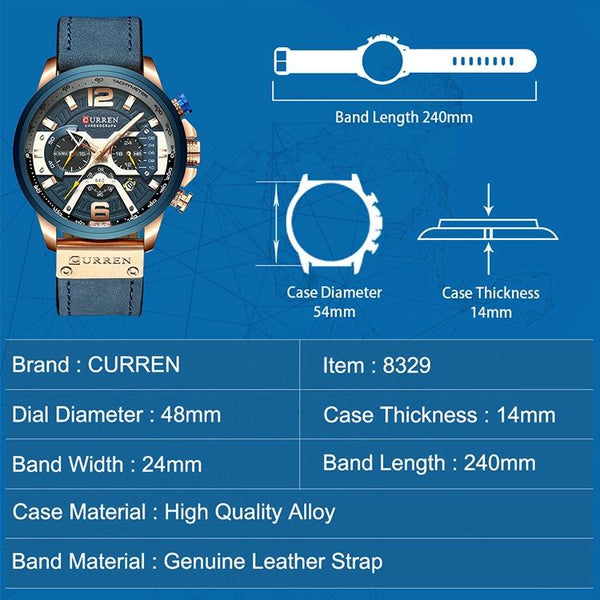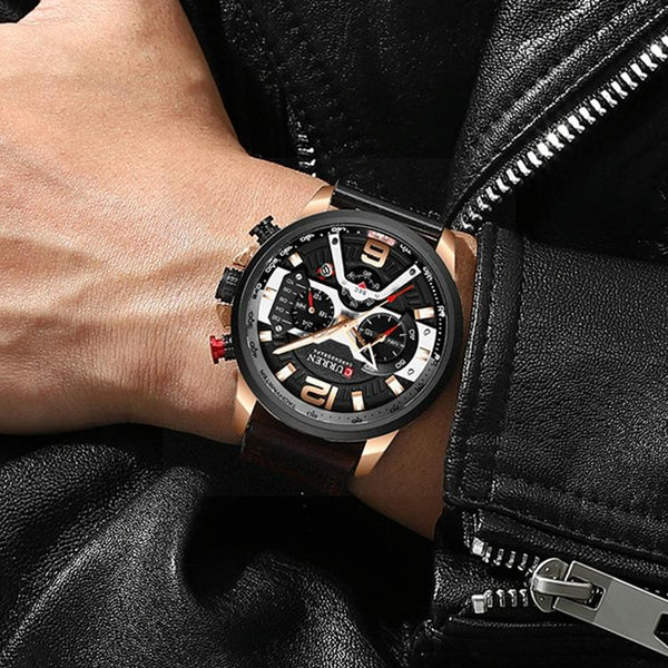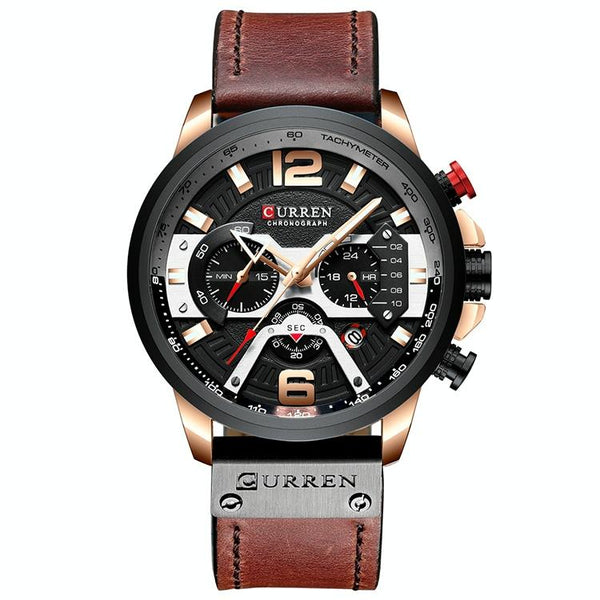 CURREN M8329 Casual Sport Leather Watch for Men(Rose black)