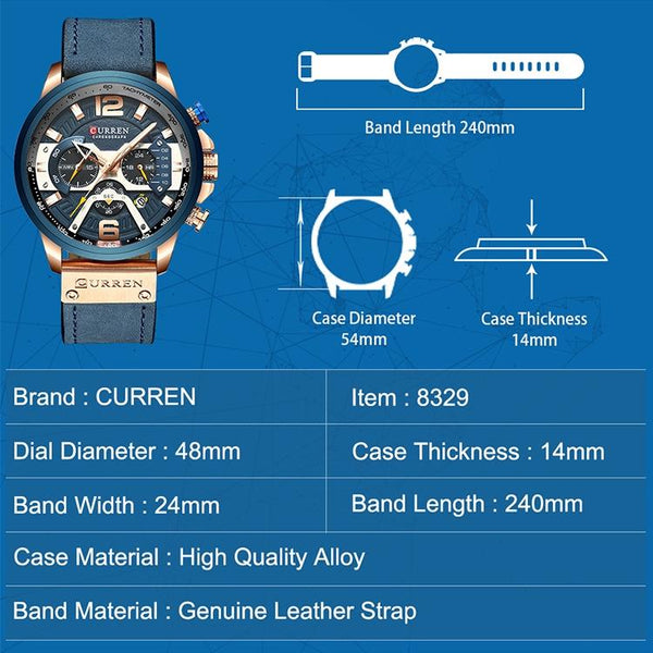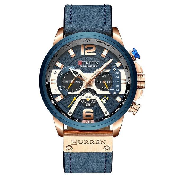 CURREN M8329 Casual Sport Leather Watch for Men(Rose blue)