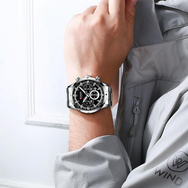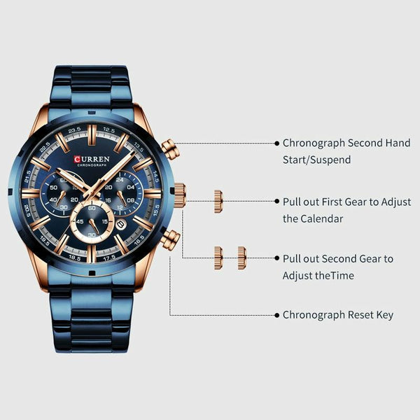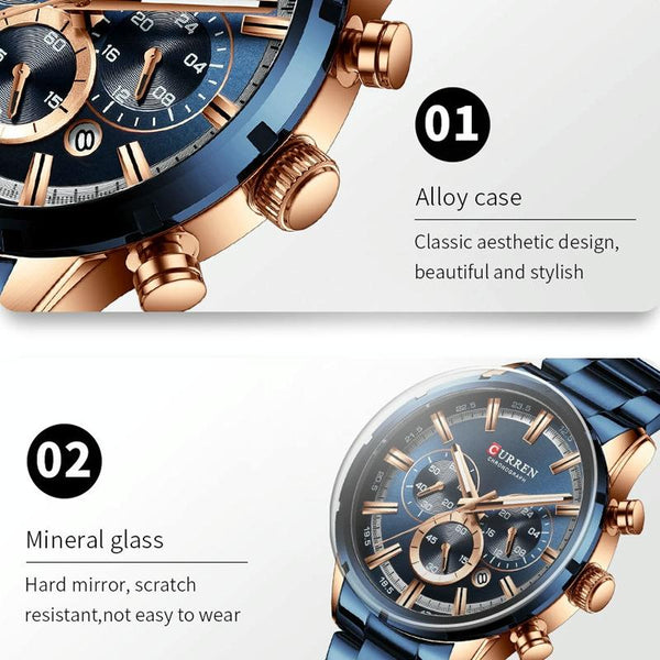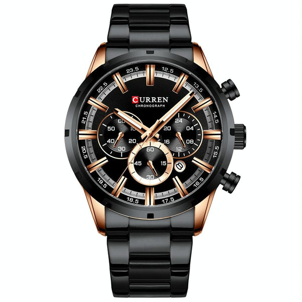 Curren M8355 Men Watch Waterproof Quartz Six Stitches Calendar Steel Belt Business Watch(Rose Shell black)