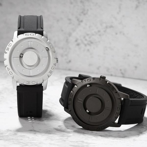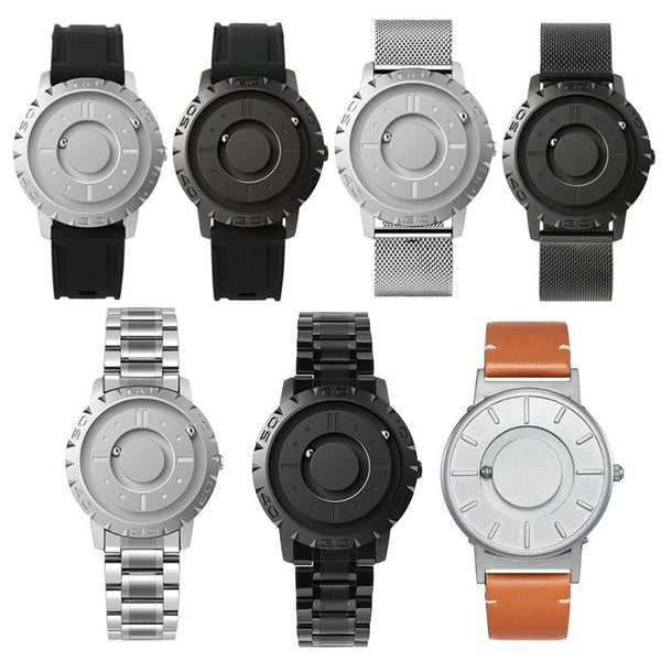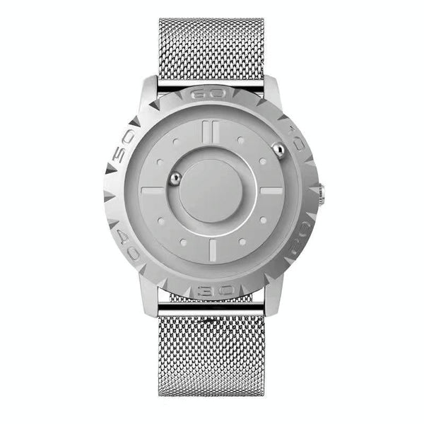 EUTOUR E030 Magnetic Ball Men Bezel-Free Design Watch(Silver Net Strip)