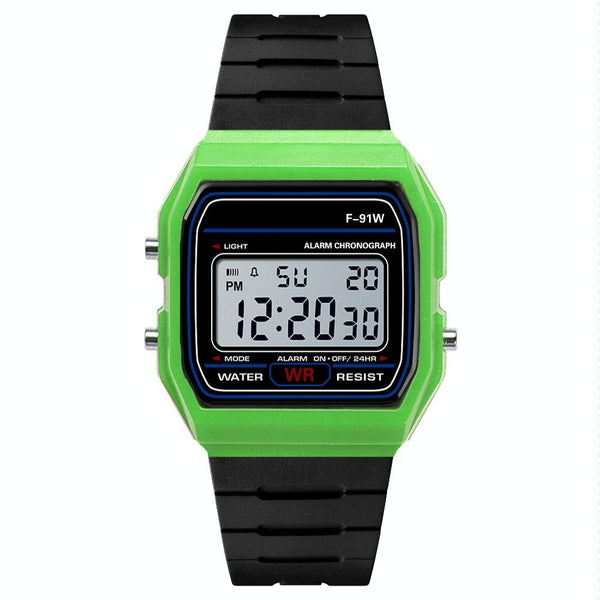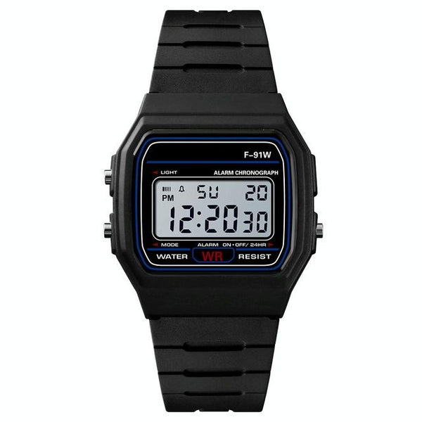 F-91W Analog Digital Motion LED Silicone Strap Multifunction Electronic Watch(Black)