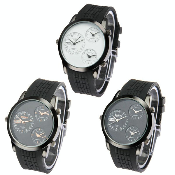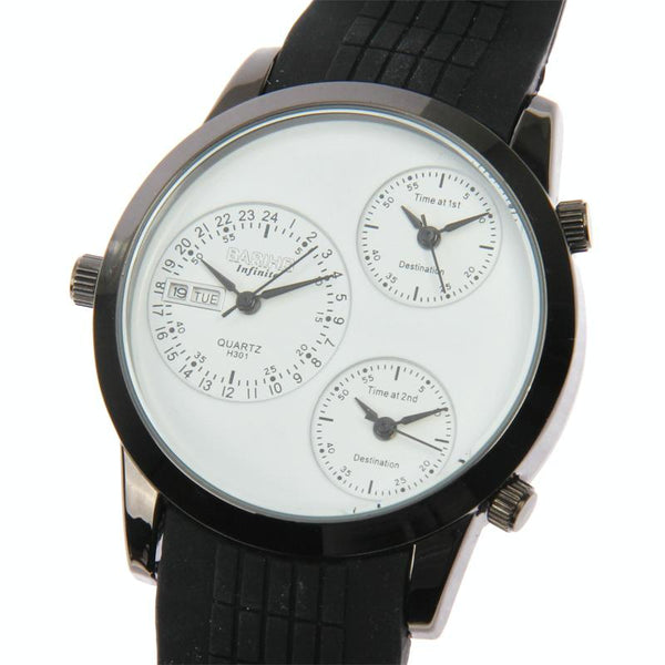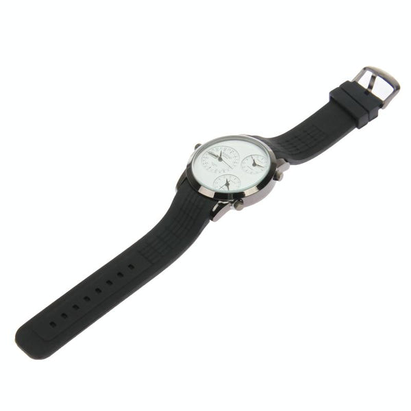 Fashion 3 Dial Quartz Wrist Calendar Watch with Silicone Strap (White)