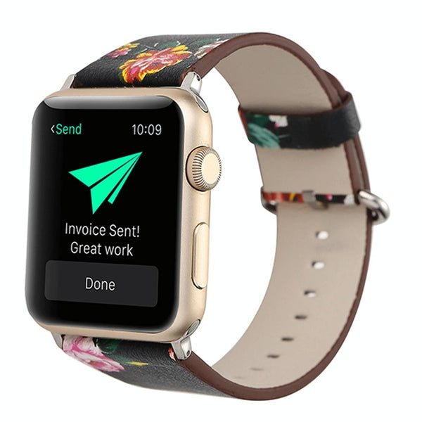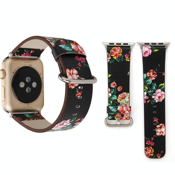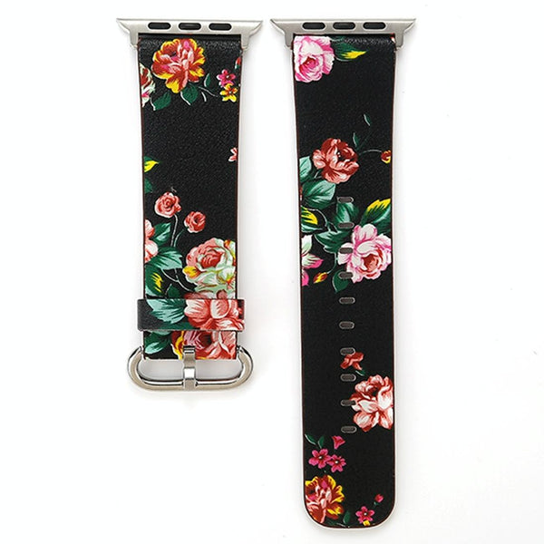 Fashion Pastoralism Style Little Floral Pattern Women Watch Leather Wrist Band For Apple Watch Series 7 41mm / 6&SE&5&4 40mm / 3&2&1 38mm