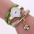 Fashion Women Casual Bracelet Leather Band Watch(Green)