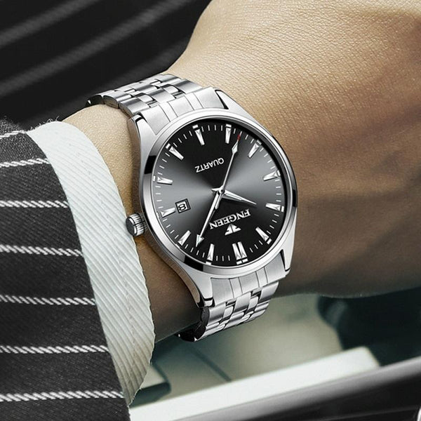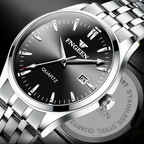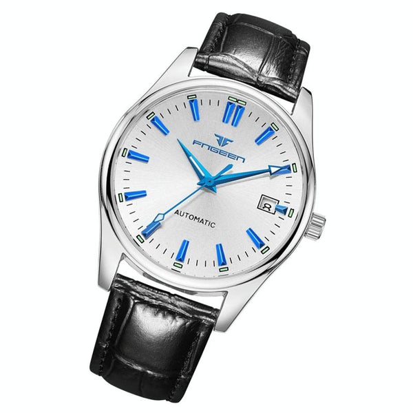 FNGEEN 2111 Men Simple Luminous Calendar Quartz Watch(Black Leather White Shell White Surface)