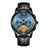 FNGEEN 4001 Men Multi-Function Quartz Watch, Colour: Black Leather Black Steel Blue Surface