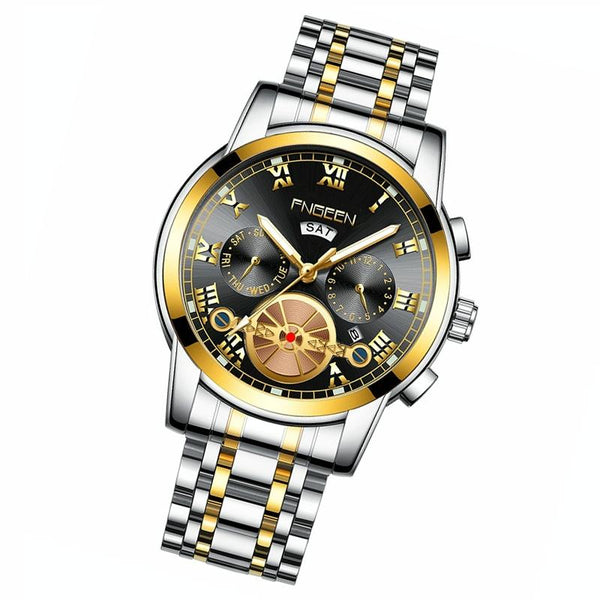 FNGEEN 4001 Men Watch Multi-Function Quartz Watch, Colour: Gold Black Surface Gold Nails