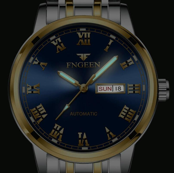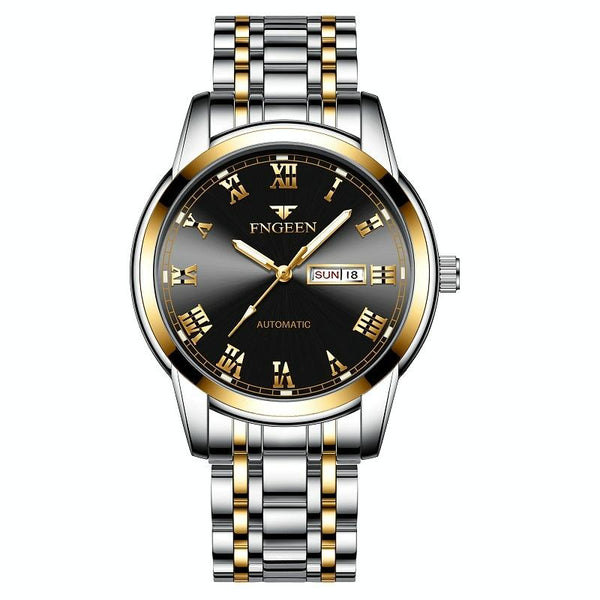 FNGEEN 4002 Men Roman Numeral Dial Sports Watch Student Luminous Quartz Watch(Between Gold Black Surface)