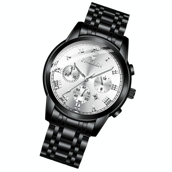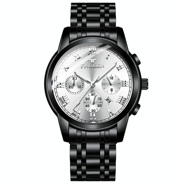FNGEEN 4006 Men Trendy Waterproof Quartz Watch(Black Steel White Surface)