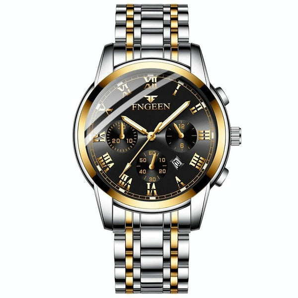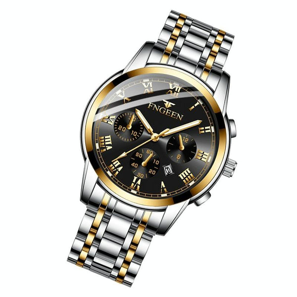 FNGEEN 4006 Men Trendy Waterproof Quartz Watch(Gold Black Surface)