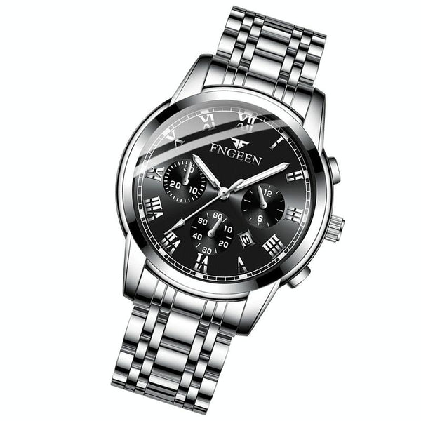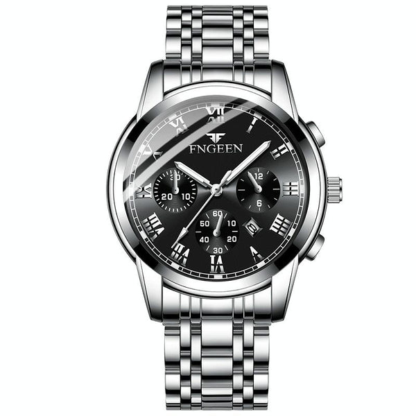 FNGEEN 4006 Men Trendy Waterproof Quartz Watch(White Steel Black Surface)
