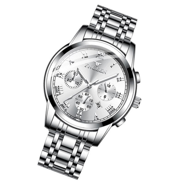 FNGEEN 4006 Men Trendy Waterproof Quartz Watch(White Steel White Surface)
