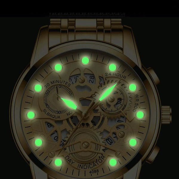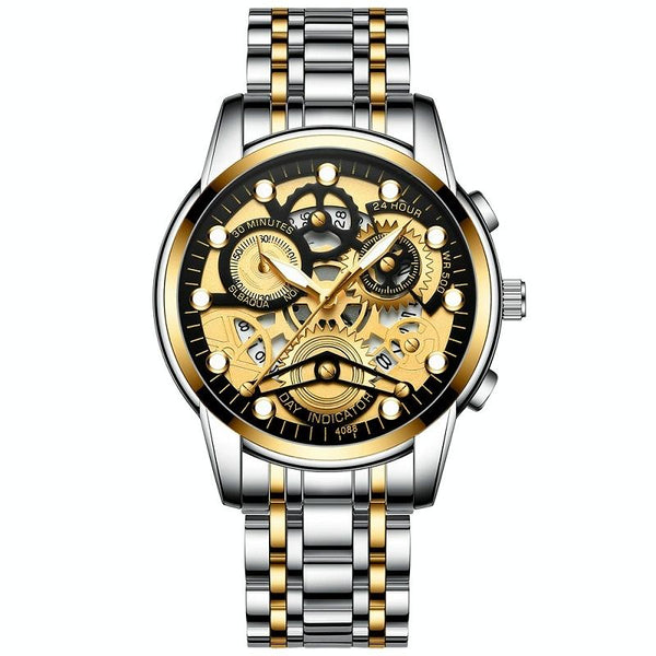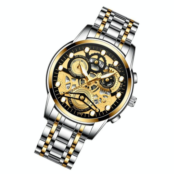 FNGEEN 4088 Men Hollow Quartz Watch Student Waterproof Luminous Watch(Gold Black Surface)