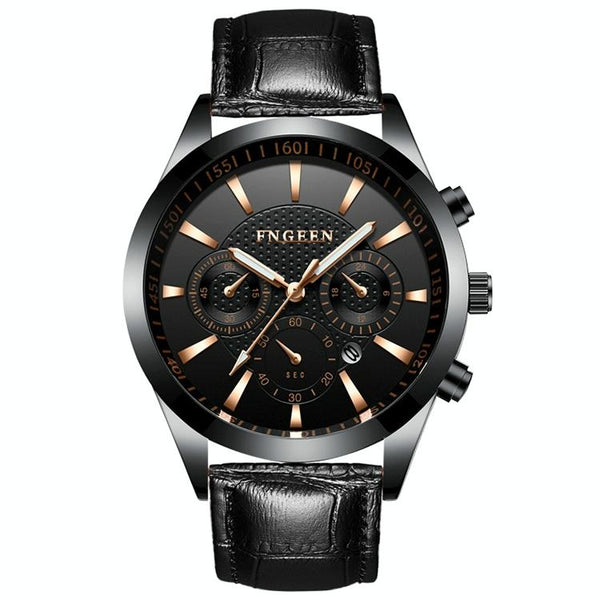 FNGEEN 5012 Men Waterproof Luminous Imitate Six-needle Design Watch(Black belt)