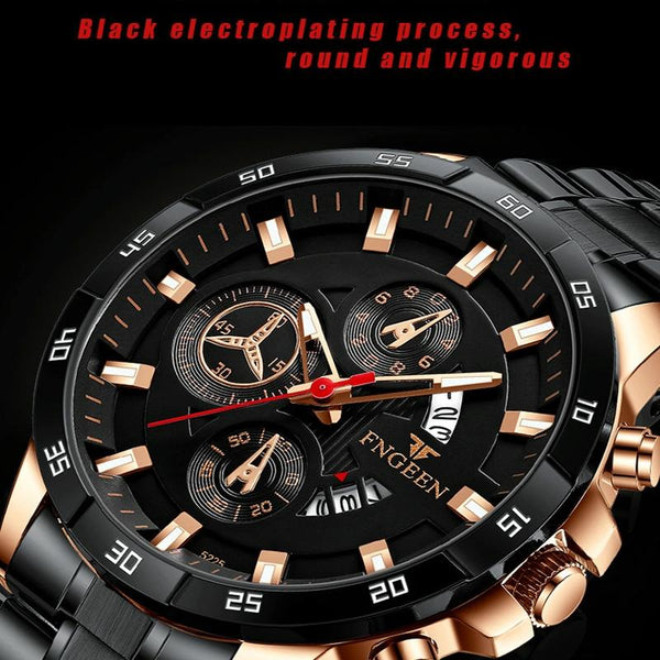 FNGEEN 5225 Multifunctional Waterproof Quartz Watch, Color: Black Steel Black Shell Black Surface