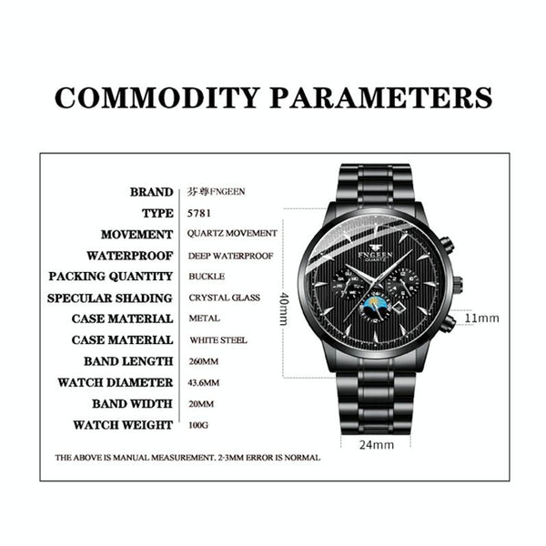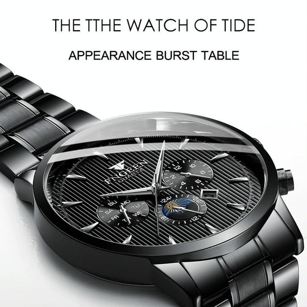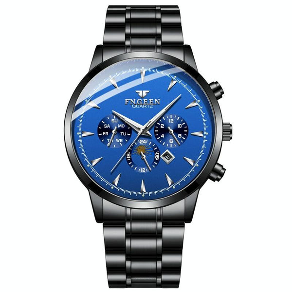 FNGEEN 5781 Multifunction Sports Waterproof Quartz Watch(Black Steel Blue Surface)